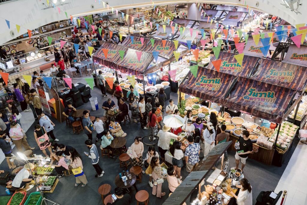 ยกเมนูหาทานยาก ที่รวมไว้กว่า 100 เมนู อาทิ ข้าวห่อใบบัว , ข้าวแช่ชาววัง ,โรตีหยอดเหรียญ ,ไข่ปิ้ง , ไอติมเขย่า เพลิดเพลินกับการแสดงร้องเพลงลูกทุ่ง ลูกกรุง ตื่นตาตื่นใจกับการแสดงฟ้อนรำพื้นบ้าน สุดอลังการ และรำกลองยาว พร้อมกิจกรรมความสนุกสนานอีกมากมาย