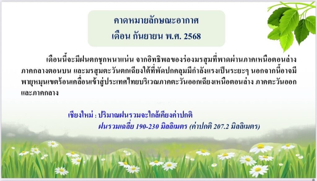 ศูนย์อุตุฯ ภาคเหนือ เผย เดือนกันยายนนี้ ภาคเหนือยังมีฝนตกชุกและพายุหมุนเขตร้อน