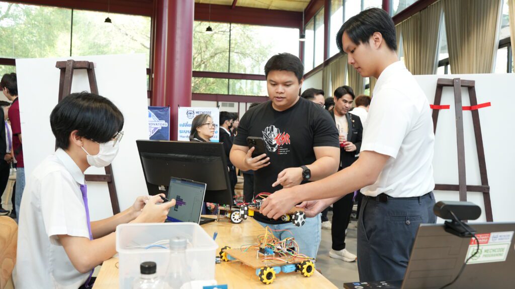 เชียงใหม่ – คณะวิศวกรรมศาสตร์ มหาวิทยาลัยเชียงใหม่ จัดงานแสดงผลงานนวัตกรรม (Senior Project Showcase) ของนักศึกษาชั้นปีที่ 4 สาขาวิชาวิศวกรรมหุ่นยนต์และปัญญาประดิษฐ์ ประจำปี 2568 โชว์ 10 โปรเจกต์สุดล้ำตอบโจทย์เกษตรกรรม-โลจิสติกส์-นวัตกรรมเพื่อสังคม โดยมีผู้เชี่ยวชาญจาก 40 หน่วยงานชั้นนำร่วมให้ข้อเสนอแนะเพื่อต่อยอดสู่การใช้งานจริง