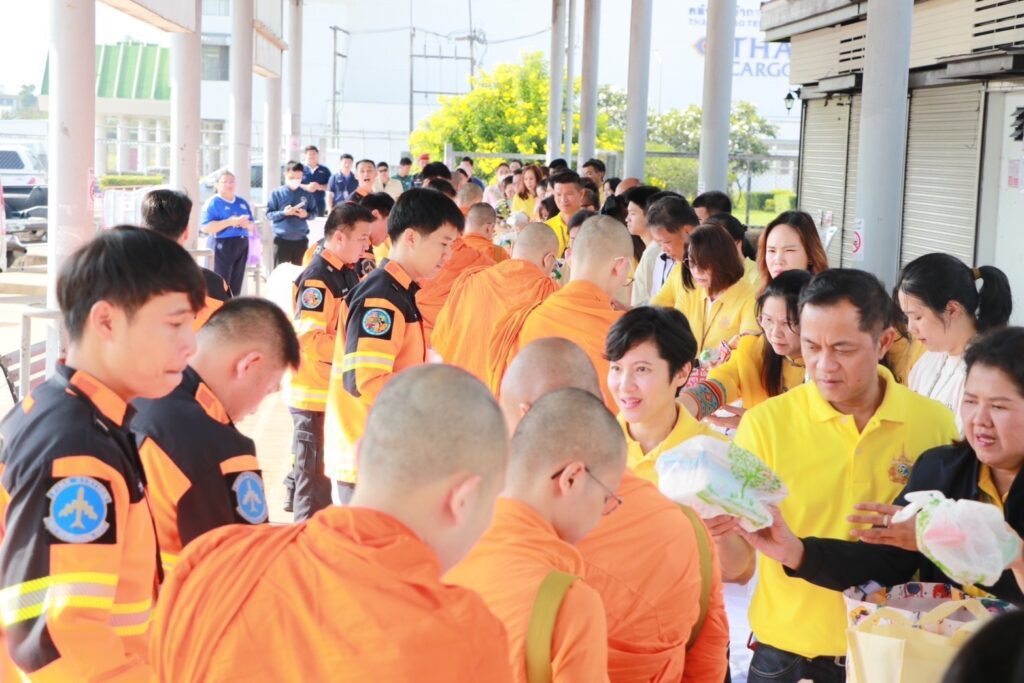 วันที่ 10 ตุลาคม 2568 นายการันต์ ธนกุลจีรพัฒน์ ผู้อำนวยการท่าอากาศยานเชียงใหม่ พร้อมด้วยผู้บริหาร พนักงาน ลูกจ้าง และครอบครัวท่าอากาศยานเชียงใหม่ รวมทั้งส่วนราชการและผู้ปฏิบัติงาน ณ ท่าอากาศยานเชียงใหม่ ร่วมพิธีทำบุญตักบาตรข้าวสารอาหารแห้ง เพื่อถวายเป็นพระราชกุศลและน้อมรำลึกในพระมหากรุณาธิคุณ เนื่องในโอกาสวันคล้ายวันสวรรคต พระบาทสมเด็จพระบรมชนกาธิเบศร มหาภูมิพลอดุลยเดชมหาราช บรมนาถบพิตร “วันนวมินทรมหาราช” 13 ตุลาคม 2568 โดยได้รับเมตตาจากพระสงฆ์จำนวน 10 รูป จากวัดสวนดอก พระอารามหลวง มาประกอบพิธีทำบุญและรับบิณฑบาต ณ บริเวณลานจอดรถบัส ด้านทิศใต้อาคารผู้โดยสารระหว่างประเทศ