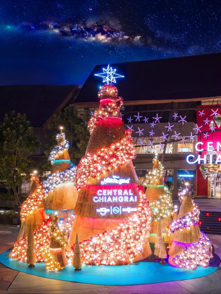 1)ต้นคริสต์มาสหมอกพันวา: ไฮไลต์ห้ามพลาด! เซ็นทรัล เชียงราย จับมือ ‘ดอยตุง’ สร้างปรากฏการณ์งานคราฟต์มาสเตอร์พีซหนึ่งเดียวในไทย เนรมิตต้นคริสต์มาสไม้ไผ่สาน ขนาดสูง 15 เมตร และรายล้อมด้วย 6 ต้นคริสต์มาส ในคอนเซ็ปต์ ‘The Magic of Chiang Rai’ ถ่ายทอดเสน่ห์แห่งล้านนาและอัตลักษณ์ของ 4 ชนเผ่าจากยอดดอยสูงที่สืบทอดมาอย่างยาวนาน ผสมผสานเป็นงานคราฟต์ โดยใช้วัสดุไม้ไผ่สานย้อมสีธรรมชาติ ตกแต่งด้วยเครื่องประดับ ลูกปัด และงานหัตถกรรมท้องถิ่น ผสานกับแสงไฟ LED ที่ระยิบระยับหลากสีสัน ที่พร้อมส่งต่อความภาคภูมิใจสู่หัวใจคนทั่วโลก