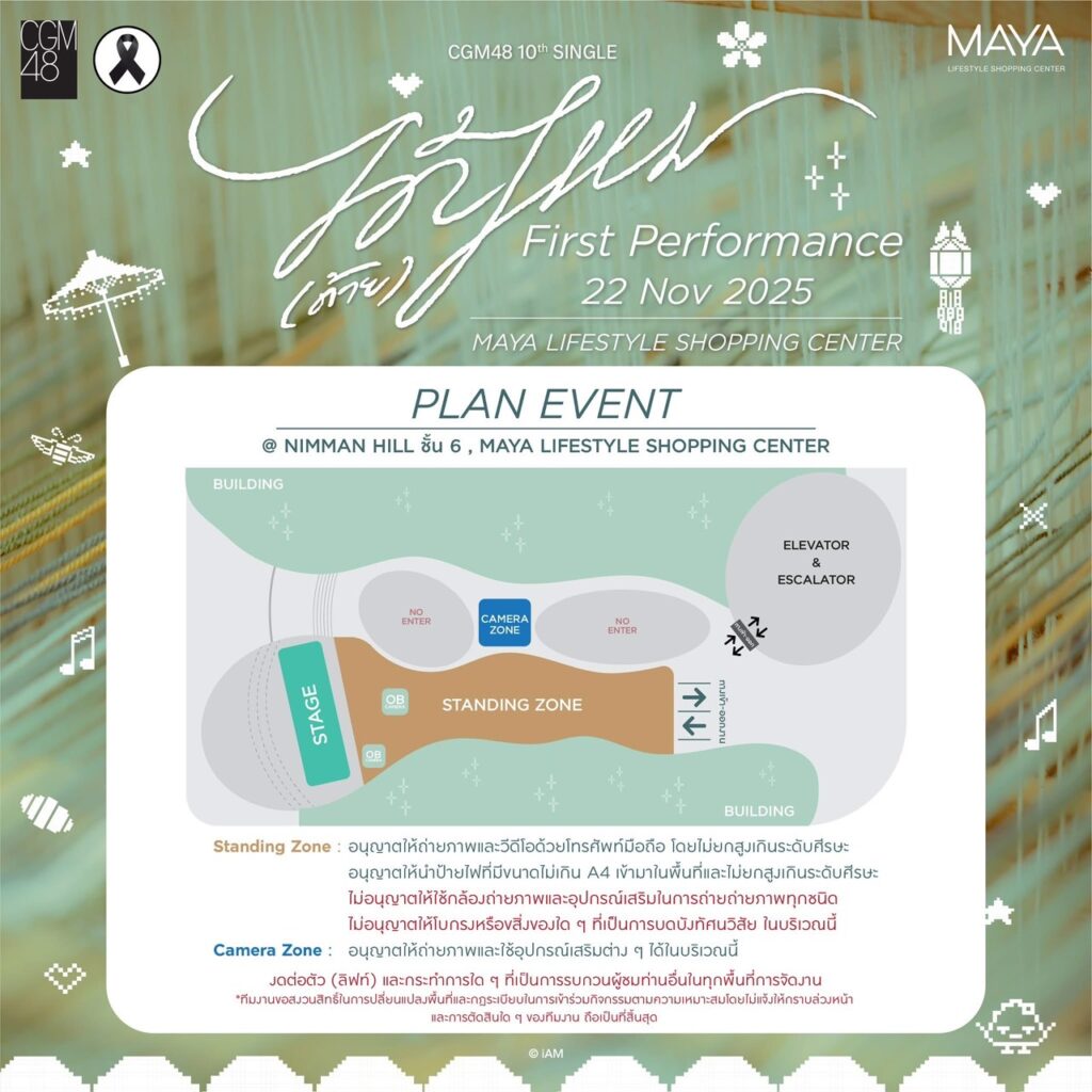 นอกจากนี้ยังมี บูธจำหน่ายสินค้าสุดพิเศษจาก CGM48 ให้แฟนคลับได้เลือกซื้อของที่ระลึกและเก็บโมเมนต์แห่งความประทับใจกลับบ้าน โดยแฟนๆ สามารถเข้าร่วมกิจกรรมได้ ณ ลานโปรโมชั่น ชั้น 4 และ Nimman Hill ชั้น 6 ศูนย์การค้าเมญ่า ไลฟ์สไตล์ ช้อปปิ้ง เซ็นเตอร์