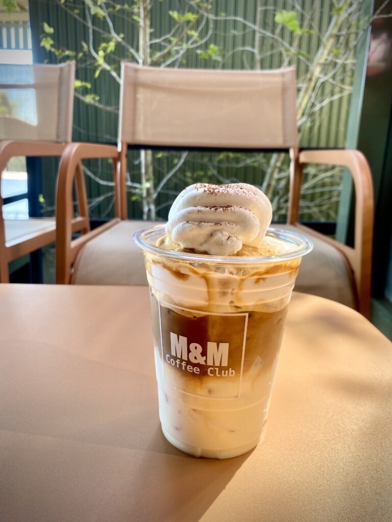 M&M COFFEE CLUB ร้านชิลล์ ๆ สำหรับทุกคนร้านกาแฟเล็กๆท่ามกลางหุบเขาอำเภอแม่แตงจังหวัดเชียงใหม่กลิ่นไอธรรมชาติเหมาะสำหรับทุกเพศทุกวัยที่ต้องการนั่งพักผ่อนทางร้านมีบริการกาแฟทั่วไป และกาแฟที่เป็นเอกลักษณ์ของทางร้านที่คิดขึ้นมาเอง อาทิ ทิรามิสุ ลาเต้ ถือเป็นเมนูที่ครบจบในแก้วเดียว มีขนมเค้ก และกาแฟ อร่อยกลมกล่อม