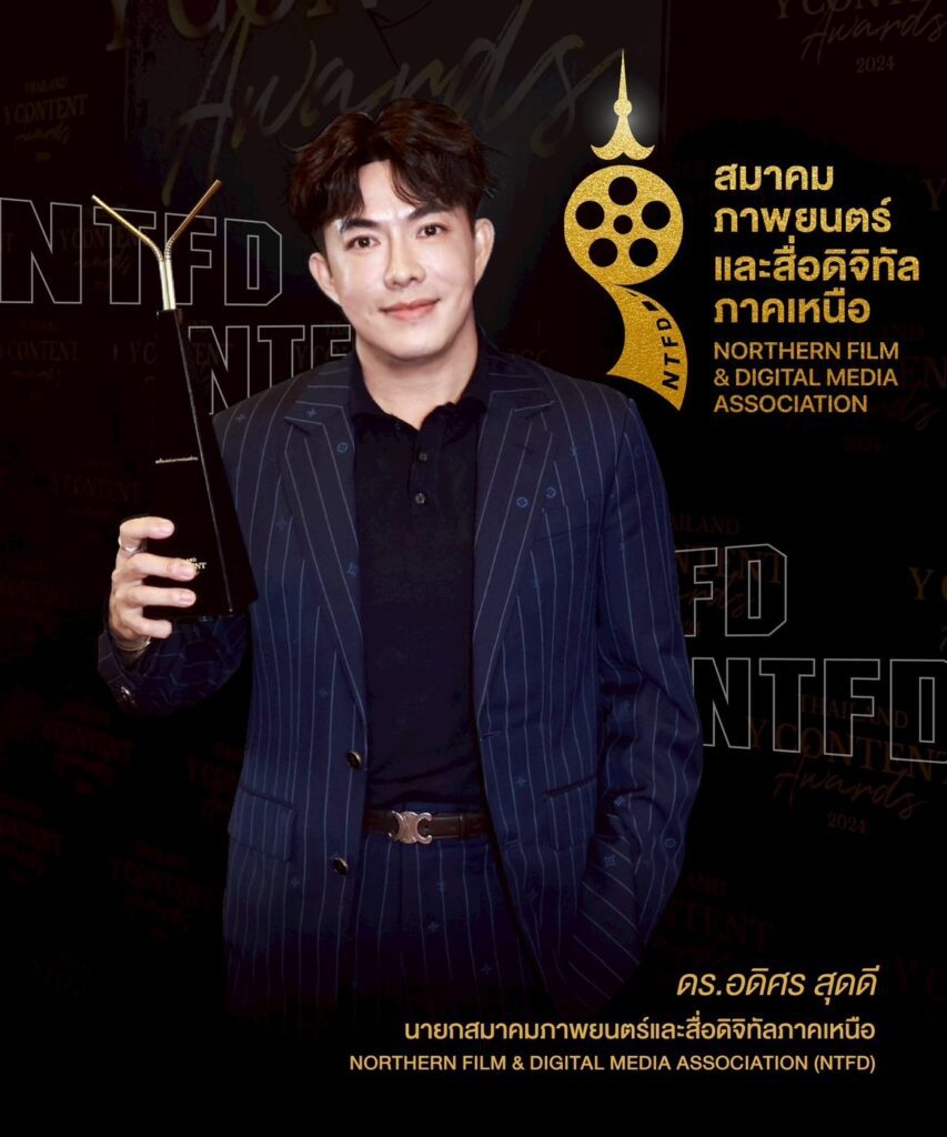 ดร.อดิศร สุดดี CEO MGY Entertainment นายกสมาคมภาพยนตร์ และสื่อดิจิทัลภาคเหนือ พร้อมทั้งนักแสดงซีรีส์เดือนพราง The Hidden Moon นำโดย “แพทย์หญิงแก้วทิพย์ – เดวิด แมทธิว – ซานต้า ณภควัต“ เข้าร่วมงาน Thailand Y Content Awards 2024