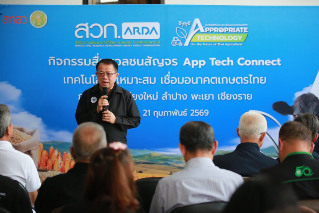 เมื่อวันที่ 20-21 กุมภาพันธ์ 2569 สำนักงานพัฒนาการวิจัยการเกษตร (องค์การมหาชน) หรือ ARDA จัดกิจกรรม “App Tech Connect เทคโนโลยีที่เหมาะสม เชื่อมอนาคตเกษตรกรไทย” นำคณะสื่อมวลชนลงพื้นที่ 4 จังหวัดภาคเหนือ : เชียงใหม่ ลำปาง พะเยา เชียงราย เปิดโลกนวัตกรรมสู่การใช้งานในสนามจริง ชี้ให้เห็นพลังงานวิจัยที่พร้อมเปลี่ยนชีวิตเกษตรกร ตั้งแต่กระบวนการผลิต คุณภาพผลผลิต ตลาดสร้างรายได้ ไปจนถึงความยั่งยืนของชุมชน