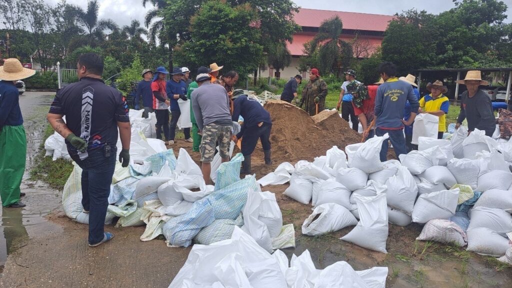 วันที่ 23 กรกฎาคม 2568 ว่าที่ร้อยตรี นพรัตน์ ศุภกิจโกศล นายอำเภอฝาง ลงพื้นที่ให้กำลังใจเจ้าหน้าที่ในการเตรียมบรรจุกระสอบทราย ณ ศูนย์ช่วยเหลือประชาชน เทศบาลตำบลเวียงฝาง เพื่อเตรียมพร้อมรับมืออุทกภัยจากพายุ “วิภา” ที่อาจทำให้เกิดฝนตกหนัก น้ำท่วมฉับพลัน น้ำป่าไหลหลาก และดินถล่มในพื้นที่