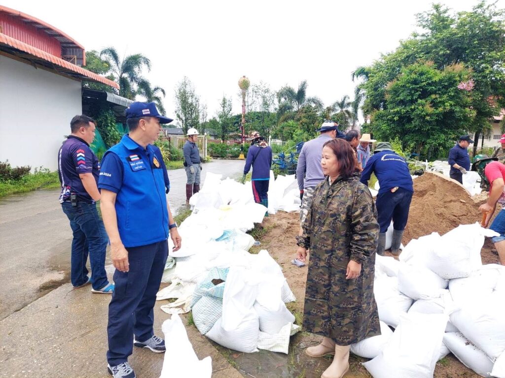 วันที่ 23 กรกฎาคม 2568 ว่าที่ร้อยตรี นพรัตน์ ศุภกิจโกศล นายอำเภอฝาง ลงพื้นที่ให้กำลังใจเจ้าหน้าที่ในการเตรียมบรรจุกระสอบทราย ณ ศูนย์ช่วยเหลือประชาชน เทศบาลตำบลเวียงฝาง เพื่อเตรียมพร้อมรับมืออุทกภัยจากพายุ “วิภา” ที่อาจทำให้เกิดฝนตกหนัก น้ำท่วมฉับพลัน น้ำป่าไหลหลาก และดินถล่มในพื้นที่