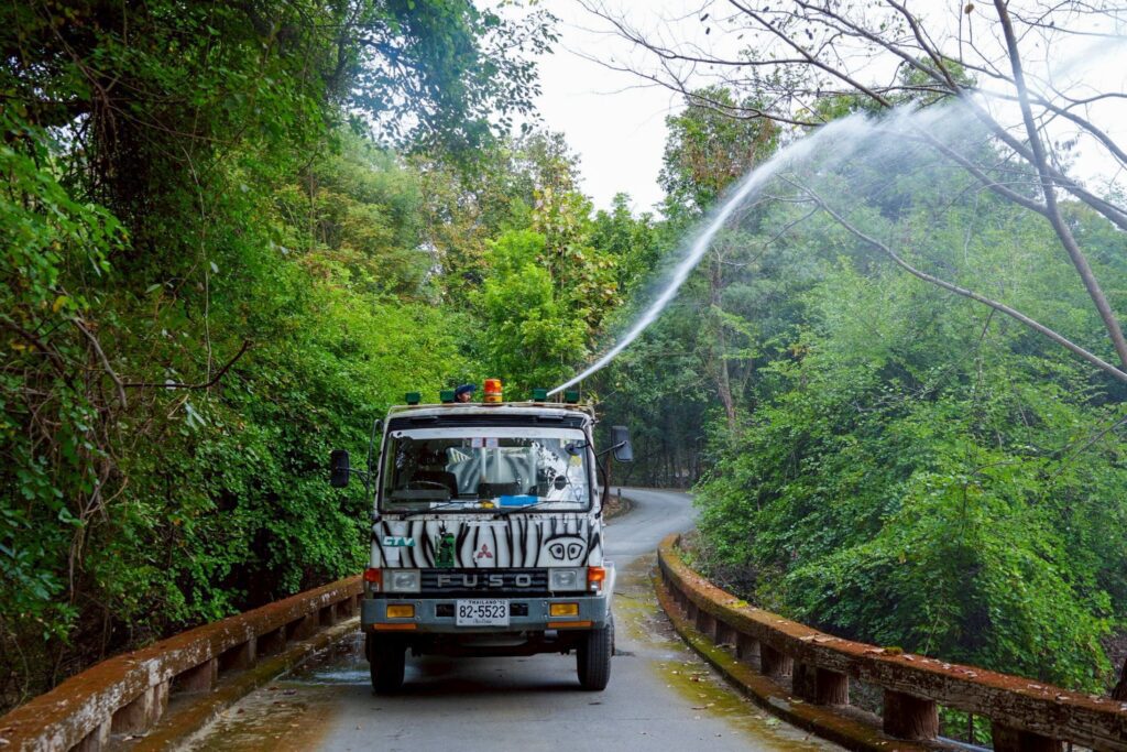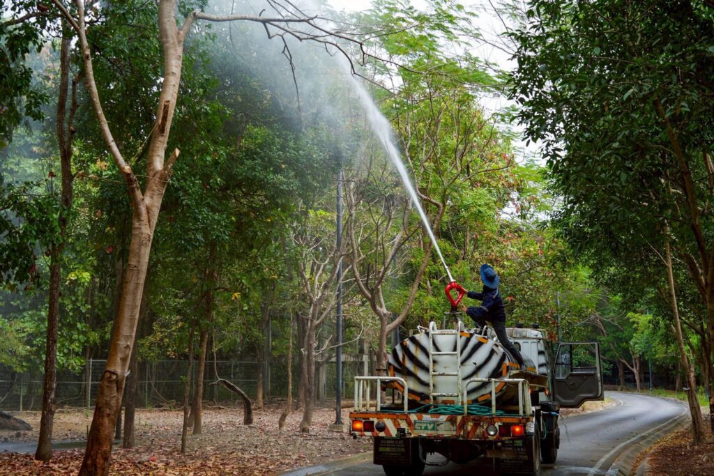 การพ่นละอองน้ำของเชียงใหม่ไนท์ซาฟารี ดำเนินการในจุดสำคัญ อาทิ เส้นทางสัญจร พื้นที่กิจกรรม และพื้นที่สีเขียว โดยใช้ระบบหัวพ่นน้ำแรงดันสูง กระจายน้ำเป็นละอองละเอียด เพื่อลดการฟุ้งกระจายของฝุ่นควัน เพิ่มความชุ่มชื้นในอากาศ และลดผลกระทบต่อสุขภาพของสัตว์ บุคลากร และนักท่องเที่ยว อีกทั้งจังหวัดเชียงใหม่ให้ความสำคัญกับการแก้ไขปัญหาฝุ่นควัน และ PM 2.5 อย่างจริงจัง โดยเน้นการมีส่วนร่วมของทุกหน่วยงานทั้งภาครัฐ เอกชน และสถานที่ท่องเที่ยวสำคัญ ซึ่งการดำเนินการพ่นละอองน้ำลดฝุ่นควันของเชียงใหม่ไนท์ซาฟารี ถือเป็นการดูแลคุณภาพอากาศ และช่วยสร้างความมั่นใจให้กับประชาชนและนักท่องเที่ยว
