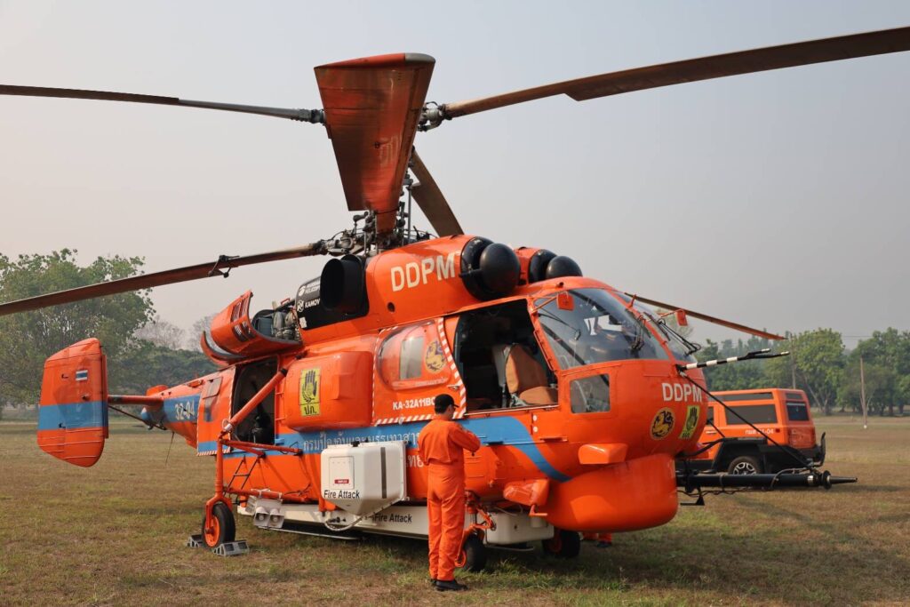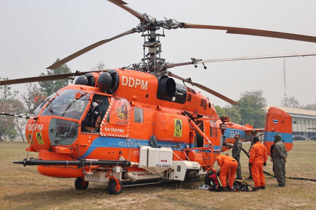 ฮ.ปภ. ยังไม่สามารถบินทิ้งน้ำดับไฟในอุทยานฯ ศรีลานนาได้ ขณะที่ ศอ.ปกป.ภาค 3 สั่งหน่วยทหารเร่งจัดรถฉีดน้ำลดฝุ่นละอองในพื้นที่